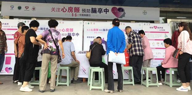 活動一開始就吸引了廣大群眾前來咨詢,醫務人員有條不紊的進行基本病史采集、測血壓、聽診、一對一解答群眾的咨詢問題等。護理人員協助發放心房顫動預防腦卒中的宣傳手冊。受到了到場患者和群眾的一致好評。共發放宣傳手冊200余份,測量血壓300余人。