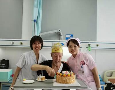 2019年8月21上午,忙碌的我們和平時一樣,有條不紊的進行著工作,但是我們心照不宣,準備給病房的一位老爺爺舉行一個溫馨的生日驚喜。在老人辦理住院的時候,細心的主管醫生李飛龍就發現老人的生日就在本月的21號,老人因為身體原因,每年要住幾次醫院,他是我們眼中的“和藹慈祥老爺爺”,同時我們也在老人心中勝似親人。在郝鋒利主任及劉娜護士長的安排下,所有在班的醫護人員為老人送來了生日驚喜。當主任和護士長端著蛋糕,所有醫護人員為老人齊唱起生日快樂歌,老人開心的像個孩子一樣,拍手表示感謝,并在大家的祝福聲中許下生日愿望。在那一刻,我們感受到了老人的激動,也體會到我們內心的那份感動,趁著這個美好的氛圍,在場的醫護人員紛紛和老人合影留念。留住的是老人開心的笑臉,科室的祥和,醫患的和諧。引用一句話“生活需要儀式感,普通平淡的日子因為被賦予了愛,感恩,紀念,才能顯得彌足珍貴”。同樣,我們的工作亦是如此,正因為每個普通的生命,需要我們去盡自己所能,去全力救助,所以每個生命都如此珍貴,如此的有意義。