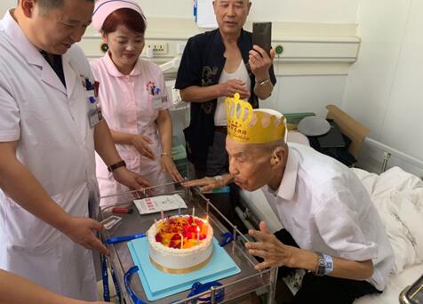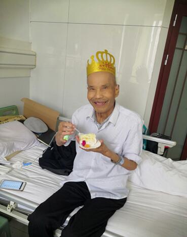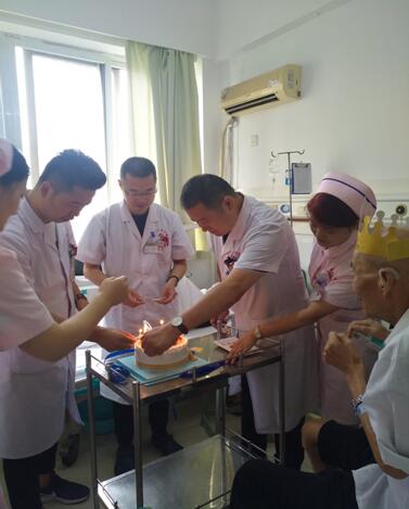 在全科醫護人員一聲聲的生日祝福中,護士長給老人戴上了生日帽,在大家的鼓動和指導下,讓老人閉上眼睛許了個愿,鼓足了氣吹了蠟燭,又幫助切蛋糕分蛋糕。一時間,老人就像是自己家的老人,這兒孫滿堂承歡膝下的景象,讓一旁的家屬感動不已:“這是我今生吃到的最好吃的蛋糕。你們救死扶傷,工作繁忙,還這么貼心地給我哥哥過生日。我真不知該怎樣表達我的感激之情。