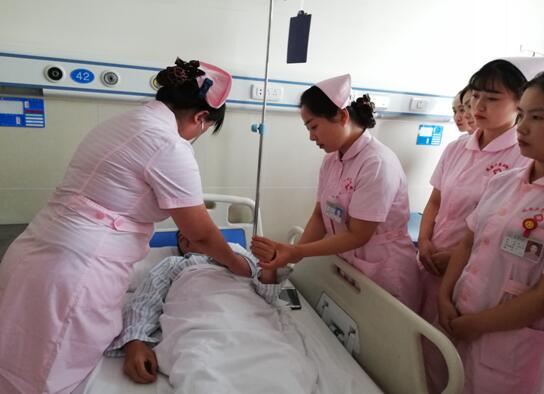 首先,在錢銳護(hù)士長主導(dǎo)下,由責(zé)任護(hù)士潘晨對患者基本情況進(jìn)行介紹,并根據(jù)患者目前情況提出現(xiàn)存的護(hù)理問題及采取相應(yīng)的措施。在此過程中,積極調(diào)動在場的各位護(hù)理同仁針對采取的護(hù)理措施進(jìn)行討論和補(bǔ)充,加強(qiáng)各科室的溝通交流。心九科顏娟婷護(hù)士長針對冠心病合并糖尿病患者飲食方面,分享了自己科室的經(jīng)驗和做法;接著不同層級護(hù)士針對目前患者的病情提出自己的護(hù)理難點,由上級護(hù)士針對下級護(hù)士的難點進(jìn)行解答,并現(xiàn)場操作示范,同時上級護(hù)士指導(dǎo)下級護(hù)士護(hù)理的重點。