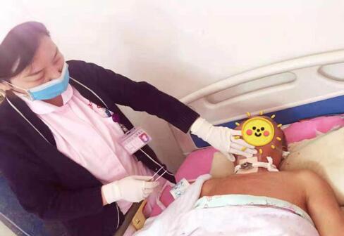 她們仔細的檢查了患者留置管道情況后,嫻熟的進行管道護理并更換固定束帶及敷料。杜芝娟護士長考慮到患者在家敷料更換不及時,還專門帶了壓瘡貼敷料,剪開并墊于氣管切開處,壓瘡貼敷料可有效的吸收切開處滲出的痰液,更大面積的保持周圍皮膚清潔。趙茹護士長又認真地詢問了患者在家的康復鍛煉情況,并再三告知家屬預防并發癥的有效措施等。家屬們端來水果,不停的說:護士長,下這么大的雨,你們辛苦了!