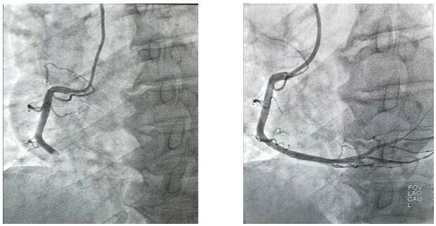 2019年10月1日凌晨1點左右,興平市人民醫院將一位急性心梗病人送至我院,患者胸痛5小時并伴有大汗,心電圖顯示ST段呈弓背向上型抬高,出現寬而深的Q波和T波倒置。心肌酶及肌鈣蛋白升高。心血管病院值班二線立即通知導管室值班醫生。“導管室已啟動”,一場與死神的博弈即將開始,醫護人員“飛毛腿”式趕到導管室,護士開始了準備工作,“液體已配好、除顫儀處于備用狀態、急救藥品準備完畢”的同時,隨著技師“趕快帶病人”。醫護人員穿上近30斤重的鉛衣、洗手、戴口罩,一場沒有硝煙的戰爭正式開始了,消毒、穿刺、造影.....手術緊張而有序的進行著,經過一小時左右的奮力搶救,病人終于脫離了危險。安全送至CCU后,醫護人員此時已經筋疲力盡,身上的衣服也已經濕透,但大家還是會共同探討手術的過程。
