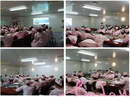 首先NICU責任護士組長董星辰做患者基本情況及診療經過匯報,通過精美的PPT向大家展示了患者住院診療、護理的全過程,此患者病情主要表現在意識障礙、氣管切開、呼吸機輔助呼吸、偶有抽搐、病情變化快、合并心、腦、肺等多臟器疾病。討論開始,科室氣道管理委員張燕、壓瘡聯絡員劉晨、靜脈治療聯絡員張艷艷、康復護理聯絡員王雪莉、感控護士劉濤等結合患者實際情況從專業組角度分別闡述了自己的觀點,院級靜脈治療組委員王玉霞護士長針對科室疑問給大家提出中線導管、PICC置管注意事項;院級皮膚管理組組長劉娜護士長,從器械性壓瘡關注到預防,氣管切開敷料的巧妙應用,引領大家學習了皮膚管理前沿知識,領略了專業魅力。