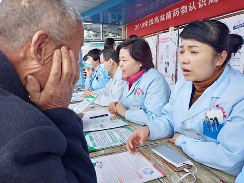 2019年我國提高抗菌藥物認識周活動主題為:“著眼未來 停止過度使用和誤用抗菌藥物”。延安大學咸陽醫院為貫徹落實《遏制細菌耐藥國家行動計劃(2016—2020 年)》有關要求,于 2019年11月21日下午舉辦了“提高抗菌藥物認識周”義診活動。