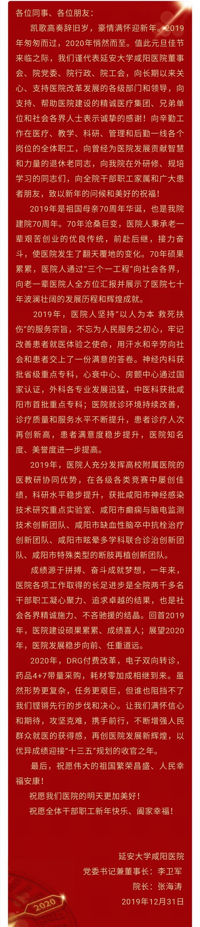 延安大學(xué)咸陽(yáng)醫(yī)院新年寄語(yǔ)