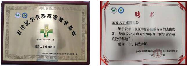 隨著經濟水平的不斷發展,超重與肥胖已經成為全社會流行的健康問題。同時,與肥胖相關的疾病,如高血壓、高脂血癥、糖尿病等慢性疾病的患病率呈逐年上升趨勢。為積極響應“健康中國2030規劃綱要”的國家戰略,于2016年正式推出《中國超重/肥胖醫學營養治療(2016)專家共識》,中國醫促會學術年會暨醫學營養減重教學基地成立工作會于2019年12月中旬在北京召開,來自全國200多家醫院營養科的同仁參加了會議,目的為踐行及推廣醫學減重共識,使醫學營養減重更加科學、規范和易于實施。我院榮獲了“百佳醫學營養減重教學基地”,并授予聘書。