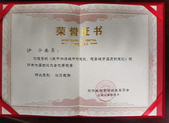 ——沙寧院長助理提案獲渭城區七屆四次大會優秀提案表彰