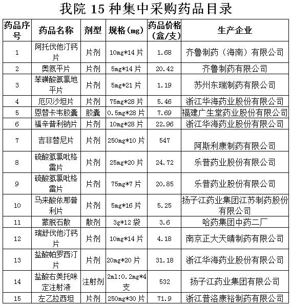 附:我院帶量采購藥品目錄