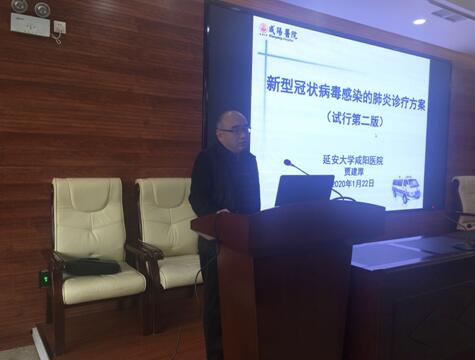 隨后,呼吸內(nèi)科賈建厚主任醫(yī)師對(duì)《新型冠狀病毒感染的肺炎診療方案(試行第二版)》進(jìn)行了解讀,詳細(xì)講解了新型冠狀病毒的特點(diǎn)、類(lèi)型、病例特點(diǎn)、鑒別診斷、診療方案。之后,感控辦楊竹杏主任為大家詳細(xì)講解了新型冠狀病毒感染的醫(yī)院感控要求,強(qiáng)調(diào)了醫(yī)護(hù)人員防控的注意事項(xiàng)。