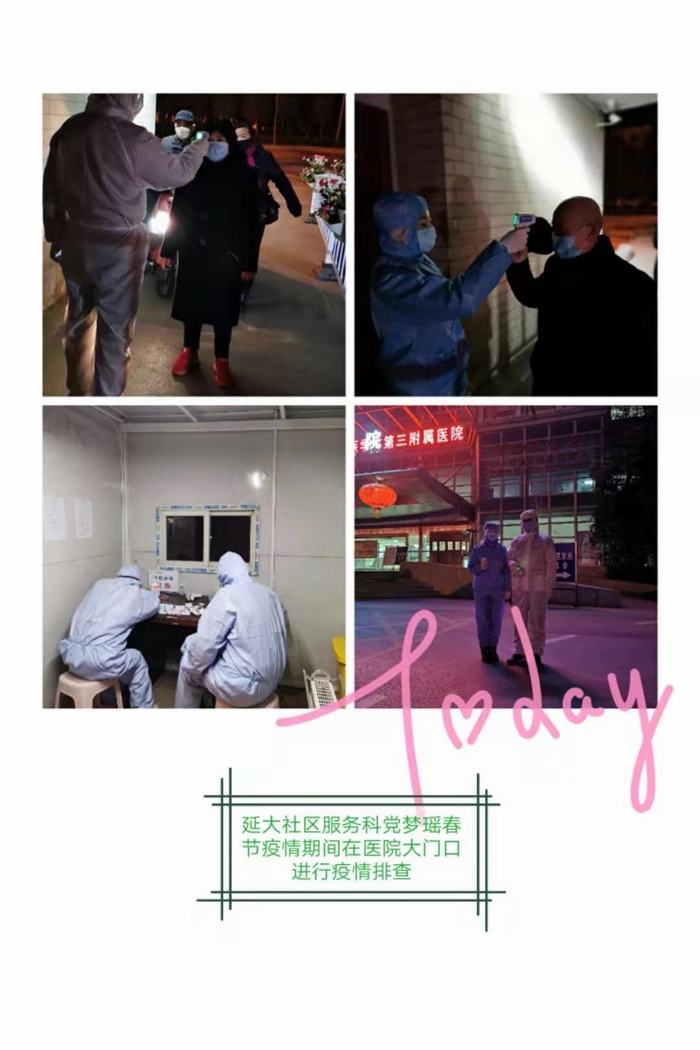 我中心黨夢瑤堅守一線,為進出醫院的人員測量體溫。