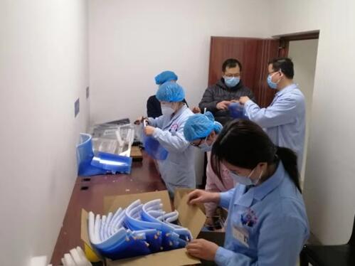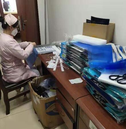 并肩相守,互幫互助,在一線,在后方,抗擊疫情的人們留下了感人至深的身影。CT/MRI室護(hù)士王蓓蓓在看到科室窗口崗位及醫(yī)院門口執(zhí)勤同志防護(hù)物資不足后,主動抽出休假時(shí)間,放棄陪伴家人孩子,來到科室利用廢棄的膠片、膠管、泡沫板制作出方便有效的防護(hù)面具,送給執(zhí)勤同志試用后得到了良好反響。劉連鋒院長助理兼醫(yī)學(xué)影像科CT室主任在得知此情況后,給予了高度贊揚(yáng)并立即號召全科室人員向王蓓蓓同志學(xué)習(xí),在她帶領(lǐng)下學(xué)習(xí)制作防護(hù)面具,醫(yī)、技、護(hù)每組抽調(diào)二人共7人組成一個(gè)創(chuàng)作小團(tuán)隊(duì),現(xiàn)學(xué)現(xiàn)做利用一個(gè)上午時(shí)間,五十副防護(hù)面具已經(jīng)制作成功并送往行政樓醫(yī)務(wù)部楊亮同志和人力資源部巨阿龍同志手中,他們負(fù)責(zé)送往咸陽北收費(fèi)站及醫(yī)院門口抗疫一線的執(zhí)勤同志們手中,這小小的舉動飽含著對奮斗在一線的同志們的平安希冀,也在傳遞著我們眾志成城防控疫情的堅(jiān)定決心,這個(gè)冬天的風(fēng)將不再凜冽,總有一束光劃破黑暗,加油,我們在一起!
