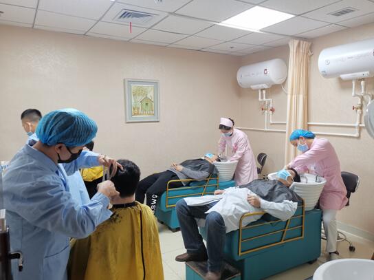 2月17日下午,“剪屋”理發店聯合陜西郵電職業技術學院對面的“藝剪”理發店,共3位理發師來我院,在外科樓皮膚科生發中心為我院醫務工作者進行義務理發,皮膚科陳小艷主任積極組織科室醫務人員為前來剪發的員工義務洗發。3位理發師自2月17日下午1點開始加班加點,每天理發近50人,至2月21日已為我院170多名員工理發。大家剪完頭發,個個神清氣爽,精神抖數,以良好的精神風貌繼續奮戰在抗疫一線。