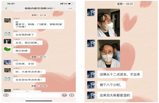 孫主任擔心這樣長時間高強度的工作會使核酸檢測人員身體透支,所以立即成立兩個核酸檢測組(健身達人郭盼、門建濤一組,顏值擔當王瑞、胡鈺琛一組),并設立試劑準備組(慕軍平、劉丹丹)、90后的帥小伙田豐為標本運送員。科室其他人員24小時待命,隨叫隨到,確保高質量高效率的完成檢測工作。盡管安排的已經非常合理,但是由于實驗耗時長,他們常常晚上十點之后才能下班。他們也是家人的兒女、丈夫、妻子、父母。疫情當前,他們是舍小家為大家的戰斗勇士,奮不顧身、勇往直前。