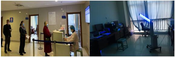 各診室紫外線消毒2次/日,心電圖機等儀器進行全面清潔消毒,75%酒精不定時擦拭儀器表面、導連線及吸球。檢查室地面及檢查床用500ml/L含氯消毒劑每天擦拭三遍,做好開窗通風,保持空氣流通。嚴防嚴控,我們積極在行動!