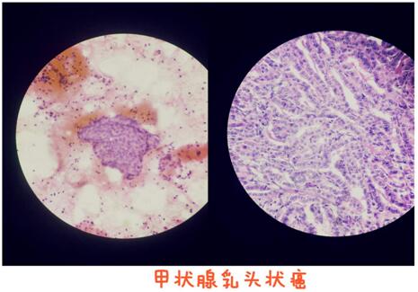近日,有門診病人一例,無明顯臨床癥狀,體檢時甲狀腺彩超提示:甲狀腺單發結節。經血液內分泌科王芳主任在B超引導下行細針穿刺取得細胞學標本。將我科診斷為"甲狀腺右葉結節穿刺涂片"惡性腫瘤,甲狀腺乳頭狀癌。半月后并行手術治療。手術標本病理診斷"甲狀腺右葉"甲狀腺乳頭狀癌。因此,細針穿刺不僅創傷小,而且可以早期、快速的為臨床醫師和腫瘤科醫師提供有價值的信息,幫助醫師正確地評估患者預后,制定最佳的治療方案。