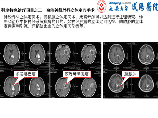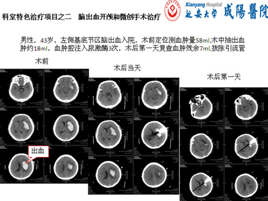 我院神經外科一病區(qū)為市級重點專科,多次成功完成顱內高難度手術,在顱內腫瘤、脊髓腫瘤、顱底腫瘤和顱腦創(chuàng)傷、腦出血手術等居全市領先水平。長期開展腦膜瘤、膠質瘤、腦出血(開顱、微創(chuàng))、大面積腦梗死、重型及特重型顱腦損傷、慢性硬膜下血腫(硬通道、軟通道)、顱骨缺損電腦三維塑型修補、立體定向腦內病變活檢等神經外科常見病的外科手術,具備顯微神經外科、功能神經外科的設備與技術。