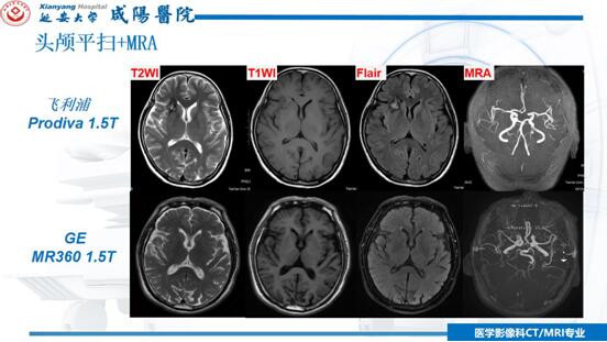 劉連鋒主任指出,飛利浦Prodiva1.5T與GE-MR360兩臺1.5T磁共振設備磁共振在功能成像,如類PET、3D-ASL、DTI、高清DWI、4D-MRA,尤其是高分辨血管壁成像和CE-MRA等檢查項目上,擁有圖像清晰度高、檢查時間快等優勢,我們要發揚這種優勢,更好的為患者提供優質的服務,同時要加深與臨床科室的合作,開展實用性技術。我們相信,在新設備、新技術項目的臨床應用實踐中,在總結經驗、對比學習的過程中,在提高自身業務能力、不斷探索的努力下,我院CT/MRI室將更好的與臨床合作、服務于廣大患者,為精準診斷、精準治療、真誠服務、健康同行這一目標不斷努力,不斷前行!