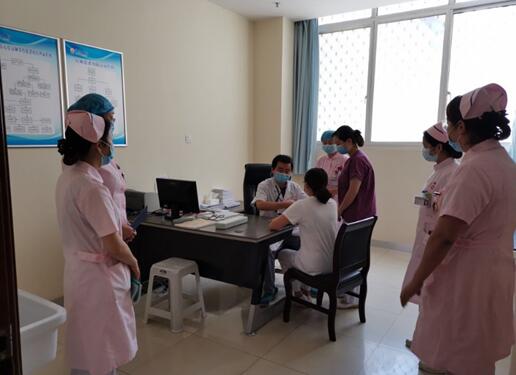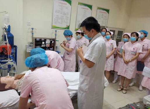 本次演練由心血管內科七病區殷本玲護士長主持,心血管內科各科護士長及護士代表共計17人參加。演練開始前,由胸痛中心護士長對科室的工作以及本次演練的目的作了簡單介紹。下午16:00,演練正式開始:一名胸痛患者自行到院就診,我科值班醫師詢問患者胸痛相關癥狀后,初步評估其可能發生了急性心肌梗死,立即通知護士協助患者入搶救室。