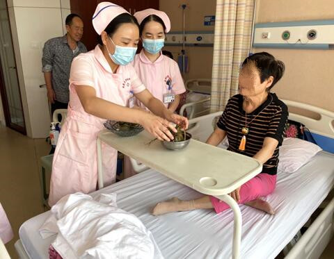農(nóng)歷五月初五,是中華民族的傳統(tǒng)佳節(jié)—端午節(jié)。6月24日上午,在糯米飄香的端午節(jié)前夕,神經(jīng)外科三病區(qū)護士長杜愛榮帶著醫(yī)務(wù)人員早早的將香噴噴的糯米粽子、香囊和五彩花繩準備好,為住院患者送上節(jié)日的問候和祝福。使患者體驗到“家一般的感覺,親人一般的感受”。