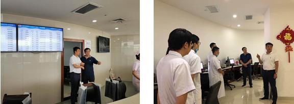 會前,在劉連鋒院長助理兼醫學影像科主任的陪同下,張明教授參觀了腦血管病院CT室工作區域,與一線員工親切交談并給予期許和寄語。