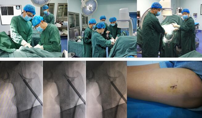 近期,我院骨科二病區收治一例34歲女性、被髖關節疼痛困擾2月余的骨腫瘤患者。入院后侯曉進主任帶領各級醫師查房,綜合患者病史、體征及各項影像學資料,初步診斷為骨良性腫瘤(骨樣骨瘤)。進一步評估患者年齡、髖關節功能恢復程度,了解患者的訴求后制定治療方案,原則以微創治療為首選。近年來射頻消融、超聲刀等均應用于骨腫瘤的治療,其具有手術創傷小、治療效果滿意、腫瘤復發率低、患者滿意度高等優良的臨床療效及社會效益。因骨樣骨瘤同樣適宜行射頻消融手術,遂將患者資料與以王永主任為首,劉文剛、杜峰醫師等具有豐富臨床經驗的疼痛、射頻治療團隊進行探討,確定此患者適宜行微創經皮穿刺取病檢術+射頻消融手術。該方法在咸陽市具有先進性,為我院微創治療骨腫瘤提出了新的思路,代表了我院骨科專業診治范圍的再突破。