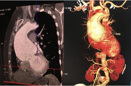 術前CTA影像:升主動脈擴張明顯,最大直徑10cm