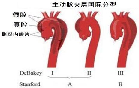 主動脈夾層最常用的分型或分類系統為DeBakey分型和Standford分型,根據夾層的起源及受累的部位分為三型: