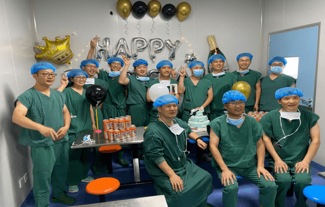 今天的手術(shù)室與往日不同, 就在大家做工作前的準(zhǔn)備時(shí),12個(gè)手術(shù)間的控制面板同時(shí)播放著舒緩的輕音樂,整個(gè)科室都被美妙的音樂聲籠罩著。這時(shí),傳來了一聲溫暖的祝福: “今天是2020年8月19日,第三個(gè)中國醫(yī)師節(jié),首先向所有的醫(yī)師們致敬!回首往昔,我們步履鏗鏘,齊筏共進(jìn)。展望未來,我們信心滿滿,執(zhí)著追求。祝大家節(jié)日快樂!”聽到祝福的所有人你看我,我看你,相視一笑,大家天真的笑臉正是這個(gè)大家庭獨(dú)有的默契。緊接著控制面板上出現(xiàn)了手術(shù)室每一位護(hù)士的聲音,頓時(shí),整個(gè)科室都被暖心的祝福語和音樂聲包圍。護(hù)士長提前帶領(lǐng)大家精心布置了茶歇室,還特地準(zhǔn)備了多層蛋糕,讓大家在手術(shù)室度過了一個(gè)難忘的醫(yī)師節(jié)。她說:“每一句祝福語都是科室所有人員提前錄制編輯完成,只是想通過這種簡單的方式傳遞對醫(yī)生最真摯的祝福。護(hù)士和醫(yī)生從來都是一個(gè)隊(duì)伍里的戰(zhàn)友,一個(gè)屋檐下的家人,都是使命的守護(hù)者。在這個(gè)特別的日子,用我們的心意表達(dá)對朝夕相處的醫(yī)師們最溫暖和最誠摯的祝福。”收到驚喜的每位醫(yī)生臉上都露出了花兒般的笑容。