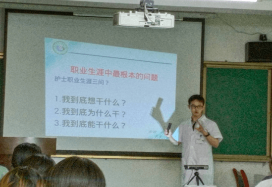 雷棟授課的題目為《“新時代”護士職業(yè)生涯規(guī)劃》,他充分結合目前護生畢業(yè)后的就業(yè)前景、護士的執(zhí)業(yè)環(huán)境及職業(yè)規(guī)劃,向在座的護生講述了職業(yè)生涯中職業(yè)規(guī)劃的意義、原則及方法等,并通過一系列典型事例,結合自身的工作體會,向護生們闡述如何做好護士職業(yè)生涯規(guī)劃。雷棟護士深入淺出的講解、引經據(jù)典的事例,牢牢吸引著在場護生的注意力,娓娓道來的親身體驗、工作經歷,帶給護生課堂之外的深刻思考,讓護生對護士的職業(yè)生涯規(guī)劃有了進一步的認知。授課在熱烈的掌聲中結束,護生們紛紛表示獲益匪淺。