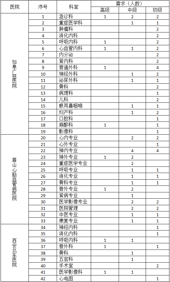 深圳市精誠醫療管理集團有限公司(精誠醫療)是一所面向中國內地和海外從事醫療投資、醫療咨詢、醫院管理、藥械研發和生產的大型醫療健康服務企業,業務涵蓋醫療服務、醫藥物流、藥械生產、投資管理四大領域。近年來集團公司規模不斷壯大,業務量快速增長,集團特委托延安大學咸陽醫院面向社會為本院及集團下屬眉山心腦血管病醫院、江蘇如皋廣慈醫院、西安北車醫院組織此次人事招聘工作。