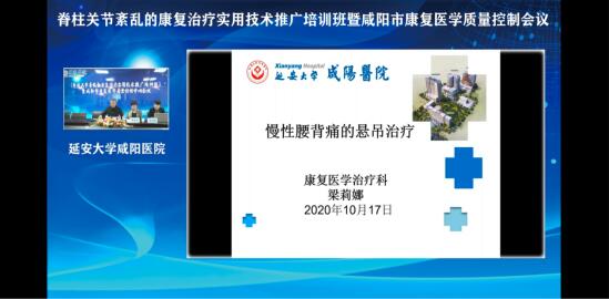 2020年10月17日,由延安大學咸陽醫院承辦的陜西省繼續教育項目——脊柱關節紊亂的康復治療實用技術推廣培訓班暨咸陽市康復醫學質量控制會議在醫生圈網絡平臺隆重召開。會議在線人數約1279人。