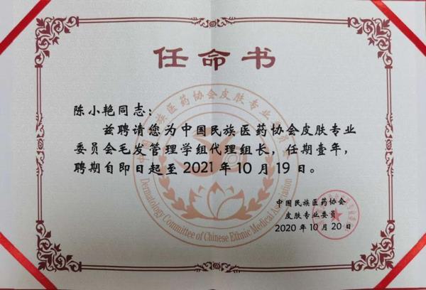 中國民族醫藥協會是經民政部備案的一級協會組織,成立于2007年。19日協會常務副會長兼秘書長李文亮親自帶隊到石家莊參與中國民族醫藥協會皮膚專業委員會成立預備會暨第一屆理事會。經選舉我院皮膚科主任陳小艷當選為“中國民族醫藥協會皮膚專業委員會秘書長”兼“毛發管理學組組長”。