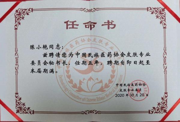 2020年10月19日-20日中國民族醫藥協會皮膚專業委員會成立大會在石家莊敬業達酒店隆重召開。來自全國各地的200多位皮膚科專家,同道共同參與、見證了中國民族醫藥協會皮膚專業委員會的成立。延安大學咸陽醫院皮膚科陳小艷主任代表醫院參會。