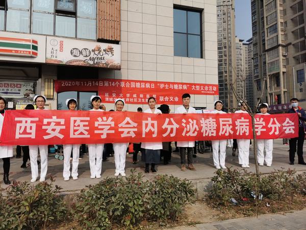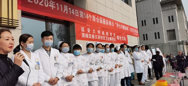 為深入開展糖尿病預防宣傳及健康教育活動,傳播健康理念和健康知識,倡導健康生活方式,提高糖尿病患者自我管理能力。11月14日,延安大學咸陽醫(yī)院與渭城區(qū)秦王府社區(qū)衛(wèi)生站聯(lián)合舉行大型義診活動。在延安大學咸陽醫(yī)院宣傳部部長趙莉的統(tǒng)籌下,由區(qū)域科長梁衛(wèi)華親自帶隊、李樹萍科長和袁騰科長協(xié)助組建了一支多學科專家團隊,有腦血管科、心血管科、眼科、血液內分泌科、新生兒科、婦科、生殖醫(yī)學科。并且還有一支糖尿病護理專業(yè)團隊組。