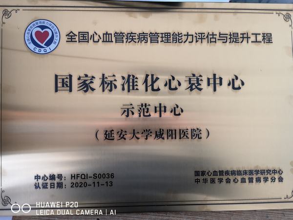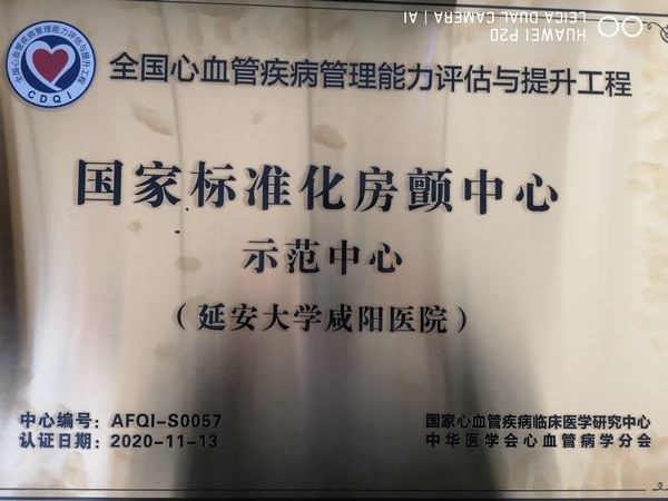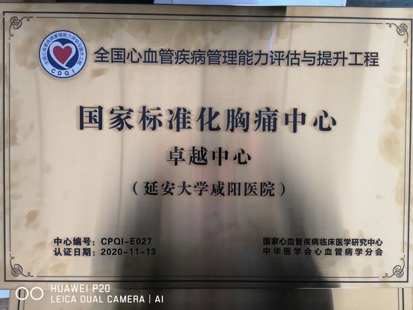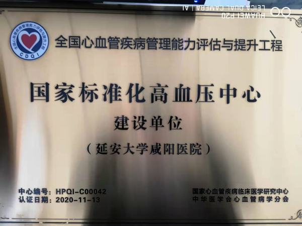 在2020年11月13日舉辦的長安國際心血管論壇“國家標準化心血管專病中心建設CDQI陜西區域啟動會”上,延安大學咸陽醫院心血管內科榮獲國家標準化胸痛中心卓越中心、心衰中心示范中心、房顫中心示范中心、高血壓中心建設單位四項國家級殊榮。