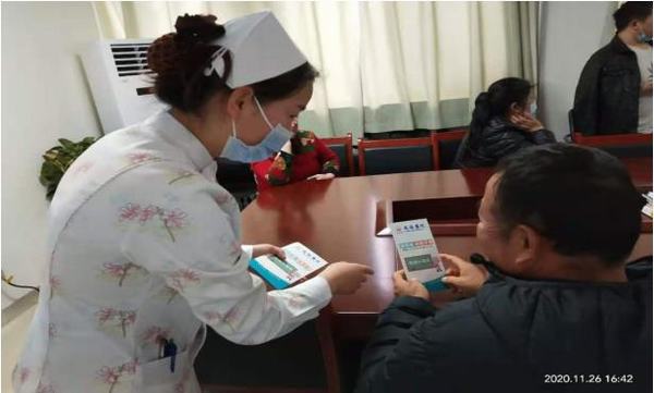 衛(wèi)思雨護(hù)師為患者發(fā)放宣傳手冊