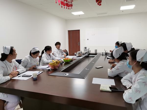 血液內(nèi)分泌科杜梅梅護士長對“患者飲食不規(guī)律,血糖如何規(guī)范監(jiān)測?口服藥如何規(guī)范服用?”的問題,建議佩帶動態(tài)血糖檢測儀,將降糖藥改為長效口服藥。模擬生理胰腺分泌胰島素等觀點讓大家耳目一新。疼痛科張蓓蕾護士長提出最新循證觀點:深靜脈血栓高風險期嚴禁按摩,建議早活動早干預(yù),使用氣壓泵、彈力襪等進行預(yù)防。在營養(yǎng)失調(diào)方面營養(yǎng)膳食科張婷老師強調(diào)醫(yī)護合作,積極治療原發(fā)病,少量多餐,以流食為主,口服腸內(nèi)營養(yǎng)制劑,給大家明確護理方向。討論過程積極熱烈,護士發(fā)言踴躍。