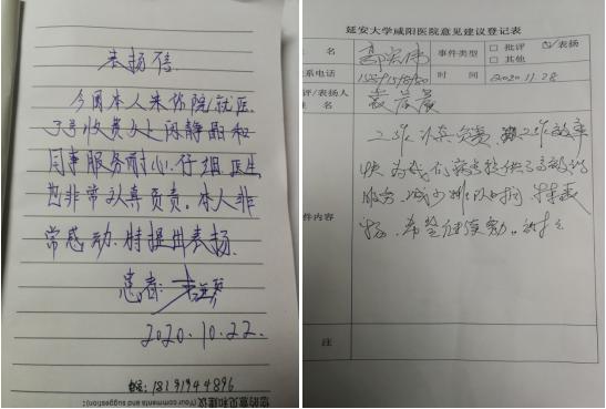 上圖為部分患所寫的表揚信