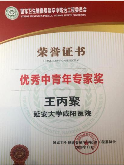 王丙聚教授榮獲中國腦卒中防治工程優秀中青年專家獎