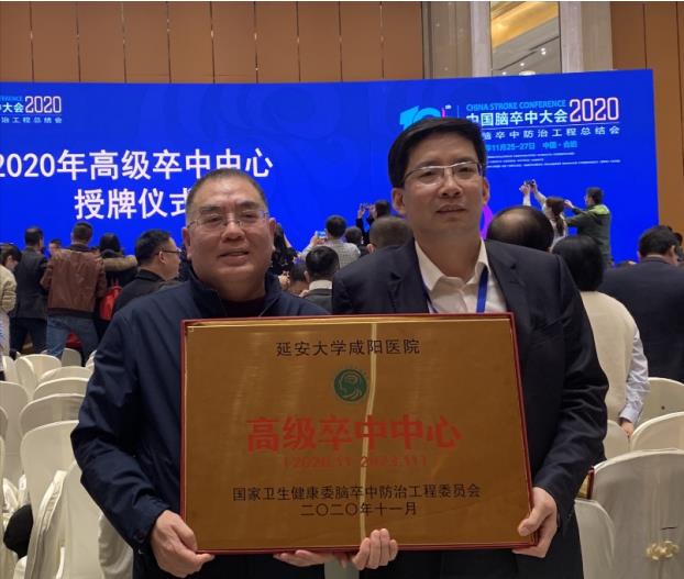 經過國家衛健委腦防委專家組復審,再次授予我院“”高級卒中中心”稱號。同時,向我院王丙聚教授頒發“中國腦卒中防治工程優秀中青年專家獎”,陜西省僅有2位專家教獲此稱號,也是咸陽市首獲殊榮。