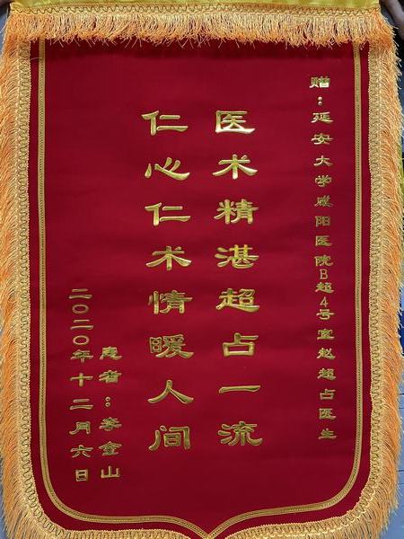 2020年12月11日下午,超聲科診室門口上演了溫馨一幕:患者李某攜其家屬捧著“醫德高尚,瞾星無雙,醫術高明,妙手回春”、“醫術精湛,超占一流,仁心仁術,情暖人間”的錦旗,再三感謝趙超占醫生和南曌星醫生對其疾病的精確診斷以及無微不至的關懷?;颊呒覍俦硎荆夯叵氪舜尉驮\經歷,感嘆過程驚心動魄,是你們認真負責的工作態度和精湛的醫術救了我家老頭子,而且也改變了我們對醫生們的一些偏見,非常感謝醫院培養出這么優秀的員工和優秀的團隊,太謝謝你們了!