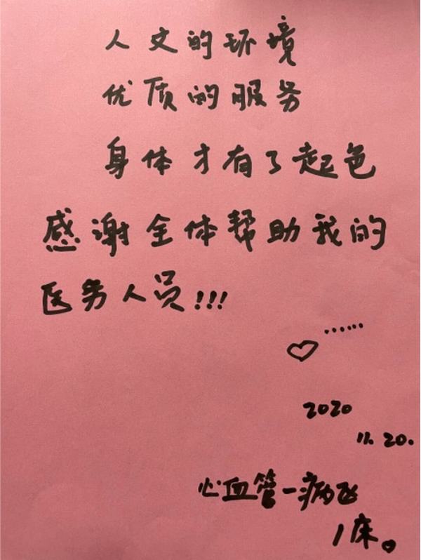 說起人文關(guān)懷,心血管內(nèi)科一病區(qū)自2018年起在科主任和護(hù)士長的帶領(lǐng)下就逐步嘗試科室人文建設(shè),從關(guān)心關(guān)愛患者著手,在科室領(lǐng)導(dǎo)帶領(lǐng)及監(jiān)督下,全體工作人員從自身做起,從小事作起,從患者進(jìn)入科室的瞬間做起!那個時候科室成員從簡單的微笑開始,起立迎接新入院患者,詢問患者需求為患者安排床位,陪同患者進(jìn)入病房,責(zé)任護(hù)士了解患者的基本狀況及需求,為患者提供相應(yīng)的服務(wù)這些基本的護(hù)理措施做起;在完成基礎(chǔ)護(hù)理解除患者病痛的前提下,醫(yī)護(hù)均可以自發(fā)的為無家屬陪伴的患者接水、買飯,發(fā)自內(nèi)心的陪焦慮患者聊天,鼓勵說出自己內(nèi)心的想法,并積極進(jìn)行解決!
