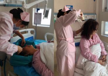 原來,細心的她之前就與主管醫生溝通過這件事情。通過護士長及各位同事的幫助,不但為患者進行了床上洗發,并吹干梳理編發。阿姨開心的說:“太感謝你們了!感覺渾身都輕松了很多!早就聽說延安大學咸陽醫院不但醫術高超,服務也好!如外界傳聞一樣,你們醫院太棒了!”