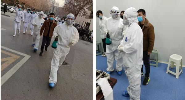 與此同時,病區護士著三級防護用品對病房進行終末消毒,物品表面使用2000mg/L含氯消毒液擦拭,床品使用雙層黃色垃圾袋封存并貼專用標識,標明新冠。