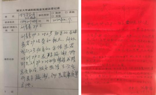 在病房里,總是能聽見病人和家屬對護士的表揚,不少患者也在意見本上留下了他們對護理工作技術和服務上的肯定,這所有的一切,與我們而言不僅僅是一份榮譽,更是一份信任和責任,科室將以此為動力,更加努力地為每位患者提供更加優質的服務。