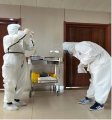 演練以“普通病房發現一名疑似新冠肺炎患者”展開進行,緊密圍繞早發現、早報告、啟動應急預案、工作人員二級防護、規范轉運、病區患者、家屬及醫護人員的排查、患者安撫、病區門禁管理、消毒、滅菌、物體表面及環境終末消毒、醫療廢物處置、醫務人員穿脫防護用具、討論改進等步驟有序進行,演練流程緊扣我院應對秋冬新冠疫情防護流程,做到環環相扣,嚴謹縝密。