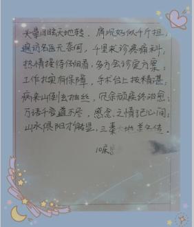 這是一位遠自新疆來的患者,用一首打油詩,以表對醫護人員的感激之情。在我院疼痛科,他的多年頑疾被治愈了,更是感受到家人般的溫暖。