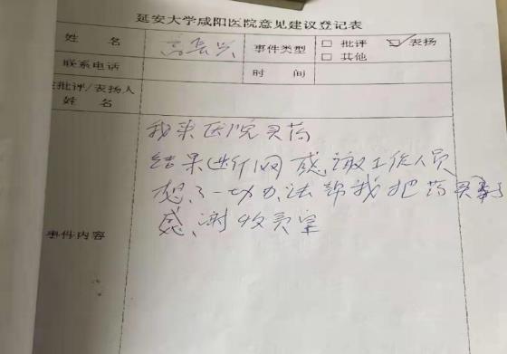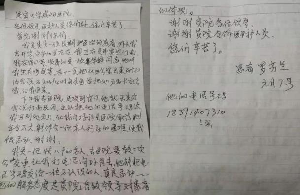 這時,腦血管病院大廳里,一位老大爺,在斷網前已經交了藥費,在去藥房取藥途中全院網絡中斷,藥房因電腦沒有網查詢不到信息,無法發藥。老大爺在醫生陪同下一起來到收費窗口,因無法取藥,要求退費。但收費室也已斷網,收費員便與醫生和藥房進行溝通協商,因就診卡的錢無法退出,陪同醫生出具情況說明,收費室填寫手工收據,收費室趙文靜主管用自己的錢為老大爺先墊付藥費,待系統恢復后補錄手續,隨后醫生便陪著去藥房取藥。事后老大爺非常感動,當場寫了一封熱情洋溢的感謝信。