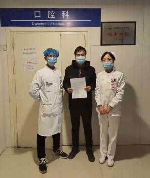 2020年12月30日晚21點30分,室外的溫度已達零下,口腔科來了一位患者,雙手捂著臉連連喊疼,值班護士史貝見狀,立即放下手里的工作,通知值班醫生陳少參。并安撫患者:“不要著急,醫生馬上過來看您!”看著患者裸露在外被凍的通紅雙手,細心的陳醫生為患者倒了杯熱水。經診斷病情確認患者為頜面間隙感染,需住院治療。醫生告知其病情危害后,此時的晁先生滿面愁容,猶猶豫豫不肯住院。護士與其溝通得知,原來晁先生住院期間沒有陪護,心情焦慮,一部分因為病情所擔憂,另一部分也因孤身住院而感到不安。護士史貝親切的說到:“您千萬放心,住院期間有什么事隨時找我”。患者最終同意住院,經治療后病情好轉,已康復出院。