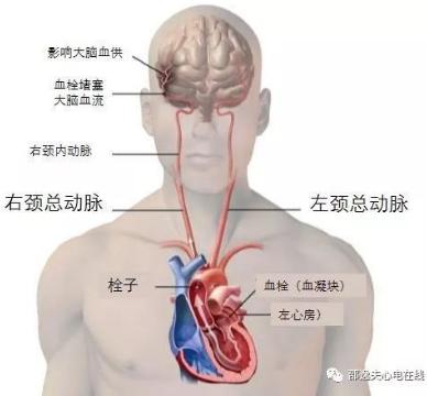其次危害:血栓栓塞。房顫時心房失去收縮功能,血流瘀滯在心房中,就容易結成血凝塊,就好像流速緩慢的河段有嚴重的泥沙淤積一樣。一旦血凝塊形成,又被血流沖刷脫落,血栓脫落后可隨著血流跑到全身各處,堵住血管,導致腦栓塞(中風)、內臟栓塞、肢體動脈栓塞等。非瓣膜病房顫患者發生中風的概率是普通人的5.6倍,而心臟瓣膜病合并的房顫則是17.6倍。